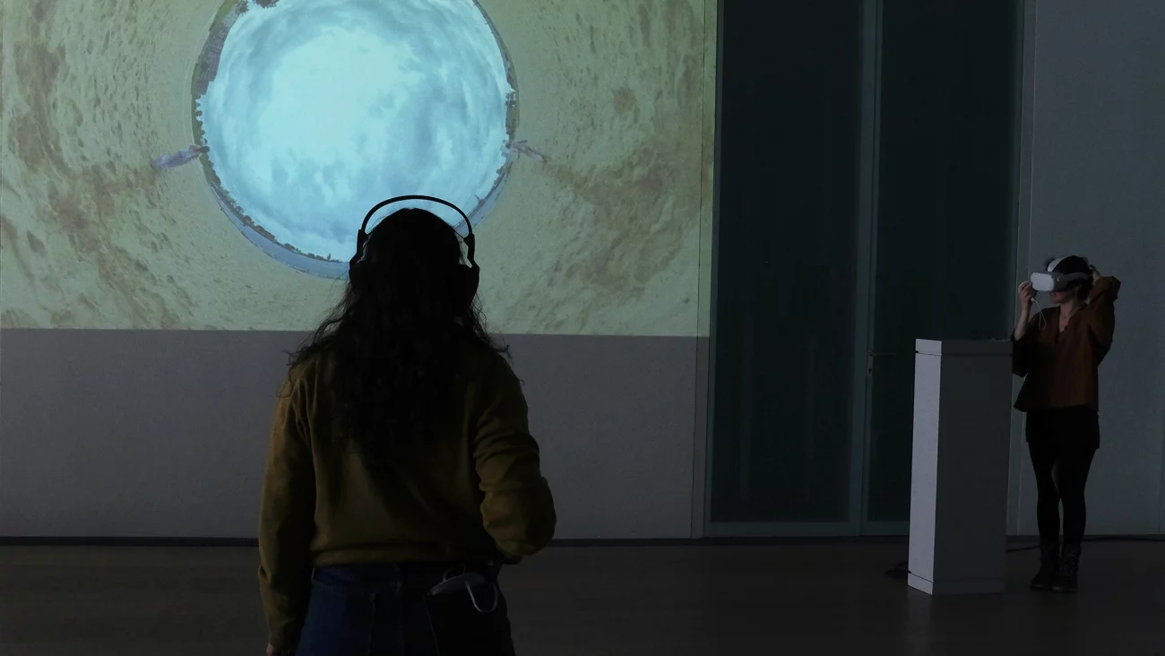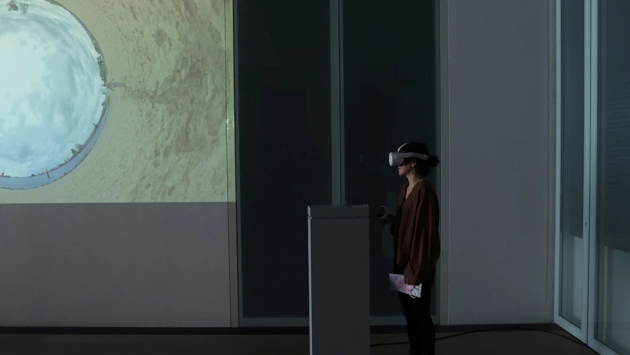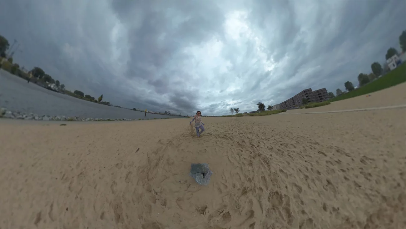The video material is presented as a three-channel installation using projection, 3D glasses, and a monitor. The work actively engages viewers, offering multiple modes of perception: to observe from the outside or through 3D glasses, to remain at a distance, or to immerse themselves in the experience.