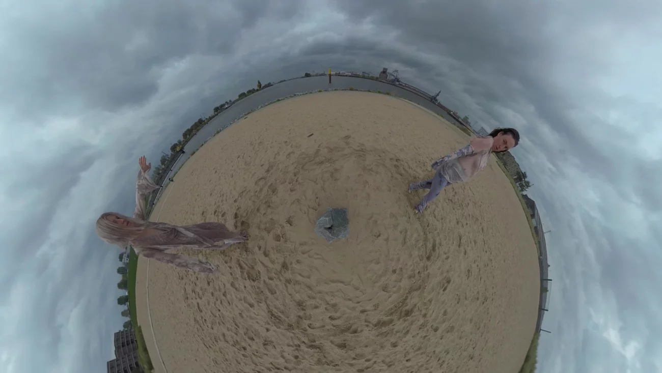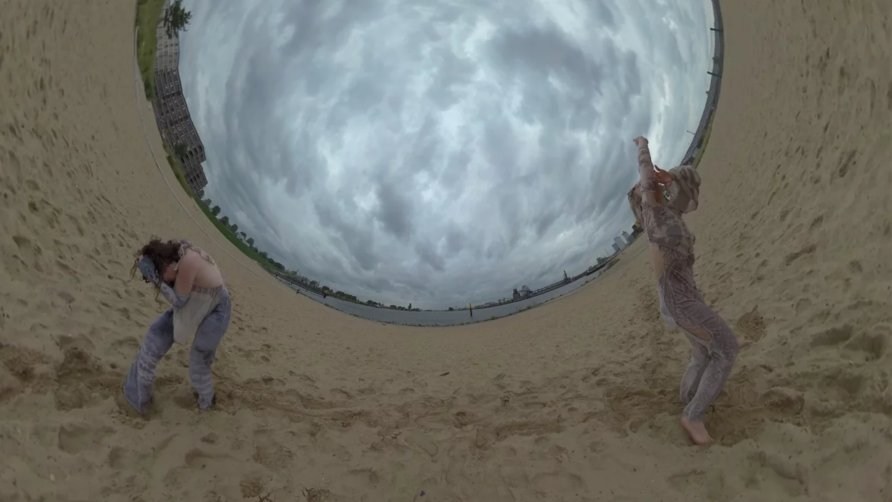 Contemporaneously is a video performance in which Alex Beyro and I move toward and away from each other, maintaining a continuous circular interaction. The performance unfolds in a space where nature and the man-made industrial landscape meet, bringing these two worlds together.