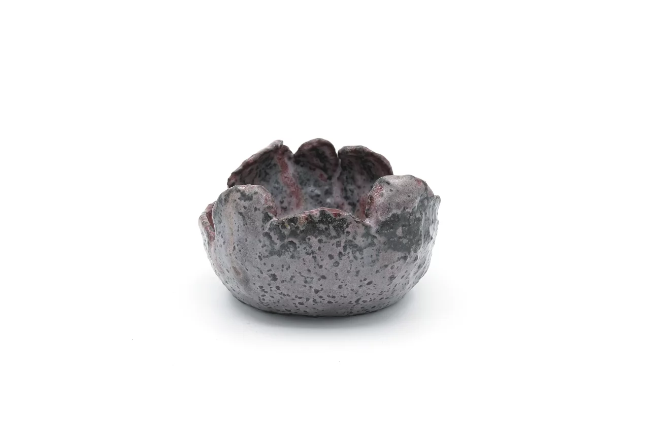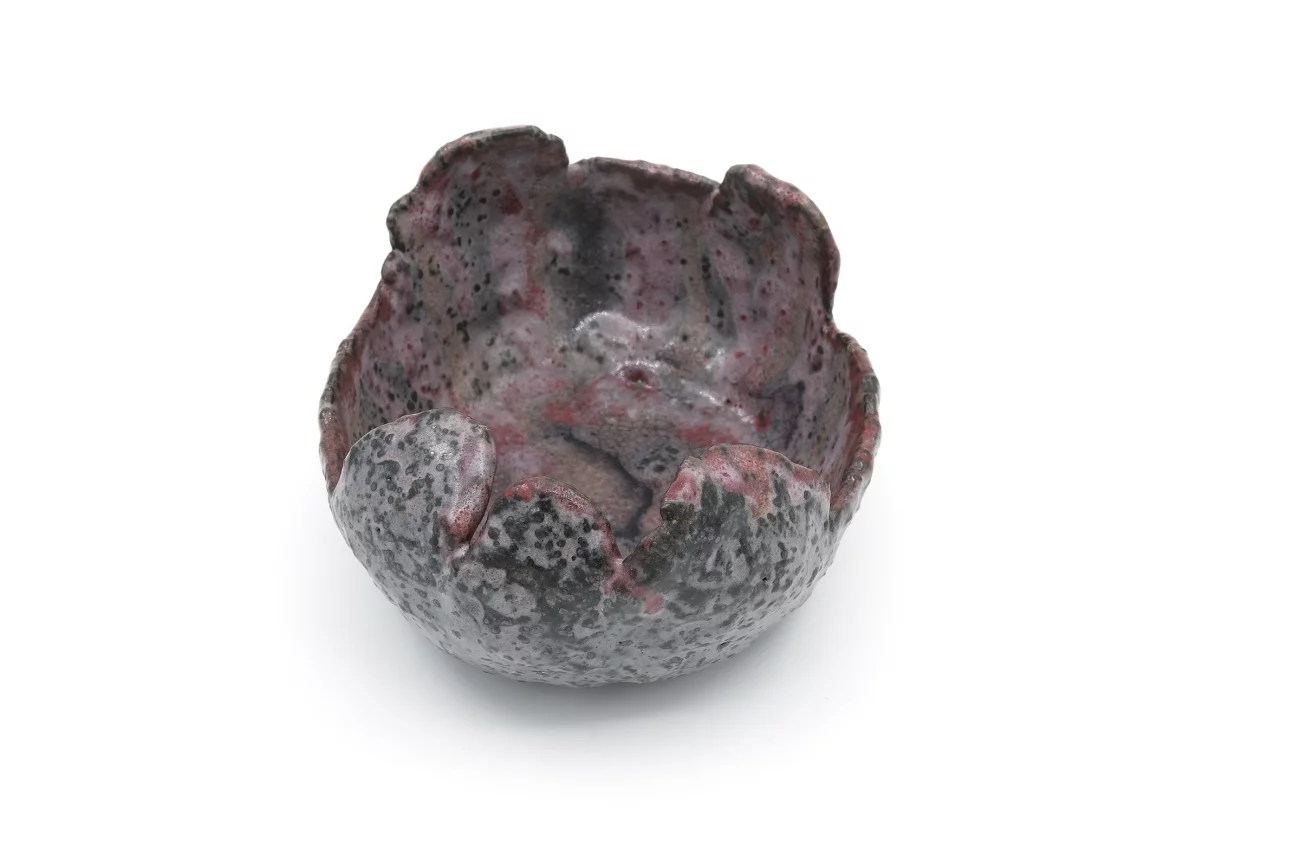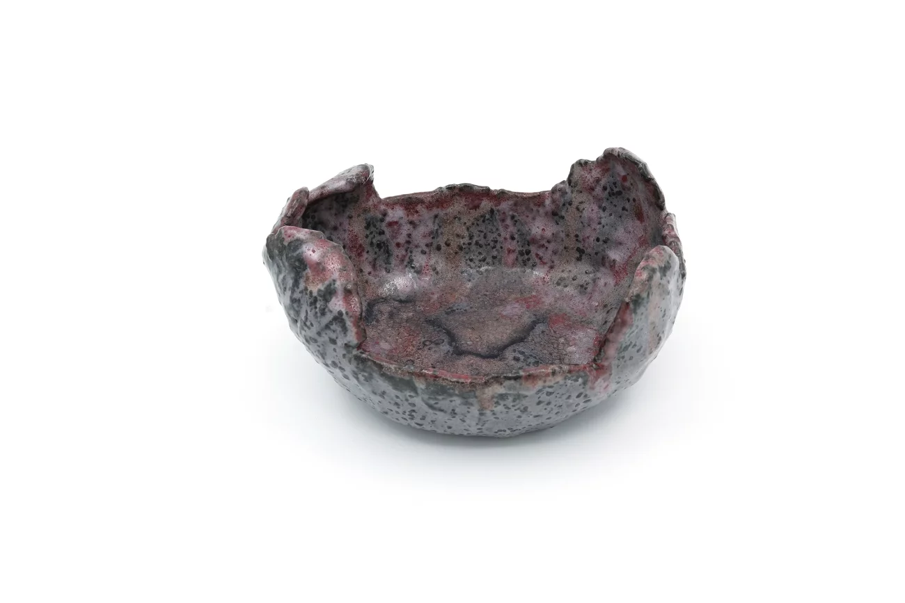 Hand-built, black earthenware, wood firing, gazed, 6,5×14cm